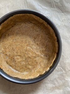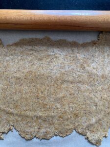adesso stendiamo la frolla con un matterello su un foglio di carta da forno e creiamo la base della nostra crostata. Il consiglio è quello di aiutarsi con le mani a raggiungere perfettamente tutti i bordi tanto è una frolla davvero molto morbida come consistenza
