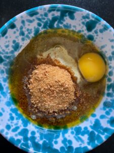 Realizziamo la frolla senza glutine unendo la farina, con una parte di zucchero (40 grammi, l’altra parte la teniamo per il ripieno), 1 uovo e olio evo.