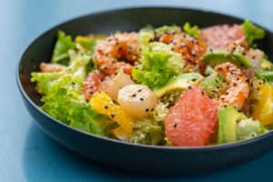 Salmone selvaggio (qui abbinato a sedano rapa, topinambur, avocado e pompelmo in una versione più invernale)