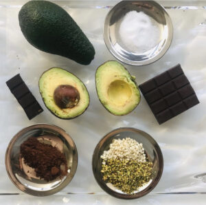 Frulliamo l’Avocado con il dolcificante scelto finchè non diventa una crema liscia. Nel frattempo sciogliamo il cioccolato a bagnomaria, poi incorporiamolo alla crema di avocado e aggiungiamo il cacao con un passino per evitare grumi.
