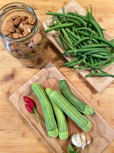 Zucchine e fagiolini si occuperanno del reintegro dei sali con un supplemento di potassio, i pinoli e il basilico effettueranno un’ulteriore azione neurosedativa e di equilibrio glicemico (i pinoli). L’abbinamento alla pasta nel corso del pasto serale è un ulteriore aiuto per il riposo.