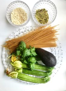 -nel mixer: polpa di avocado, zucchine in pezzetti, basilico, mandorle,pinoli, olio evo