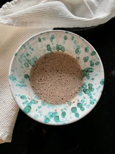 La prepariamo con una farina a scelta (cercando di sceglierne una poco raffinata che mantenga intatte le proprietà), cacao amaro in polvere e albume.