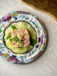 Una ricetta fresca e drenante, che offre un ottimo stimolo per la tiroide grazie all’abbinamento funzionale di pesce bianco, pesca bianca e cetriolo.